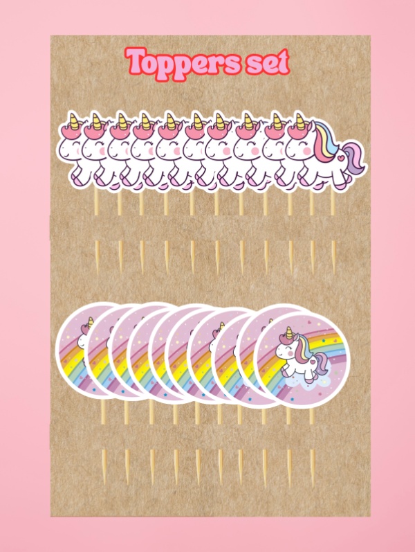 Set toppers unicornios x 22 unidades